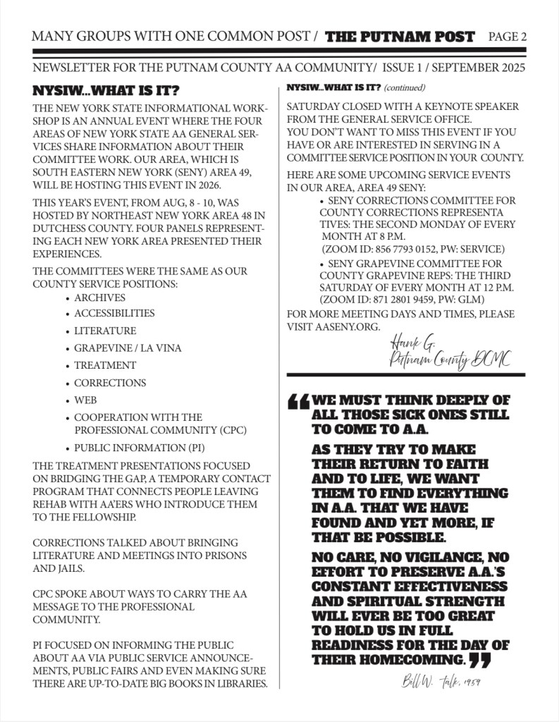 Past Events Past Newsletters Putnam Post September 2025 Share this: Click to share on X (Opens in new window) X Click to share on Facebook (Opens in new window) Facebook Like Loading...